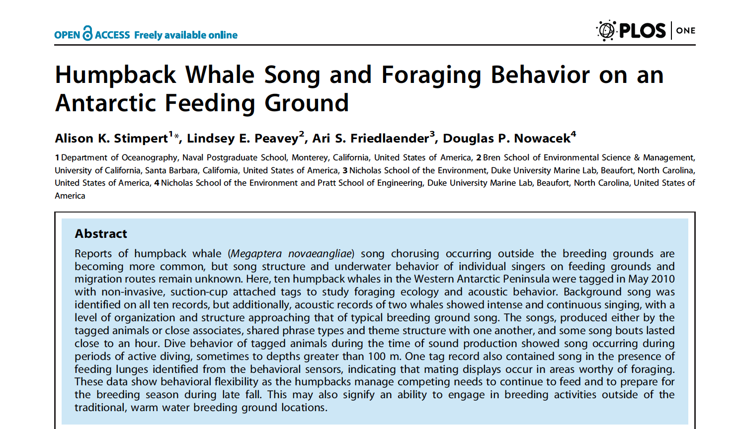Click here to read the full article, and click on this audio file to listen to an example of the song pattern we identified: Example of humpback whale song.